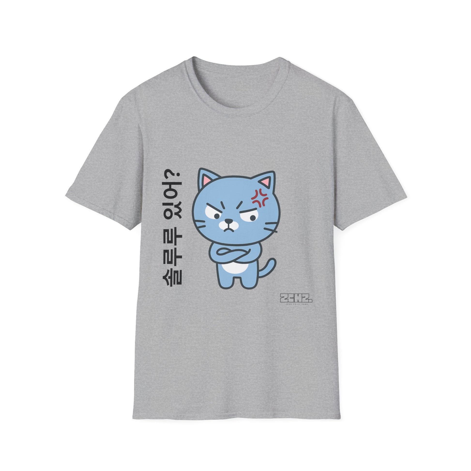 This tee features an adorably angry Korean-style cat with the phrase “솔루루 있어?”, which means “Do you have a solution?” — because sometimes, the vibe is ✨no patience, only questions✨.